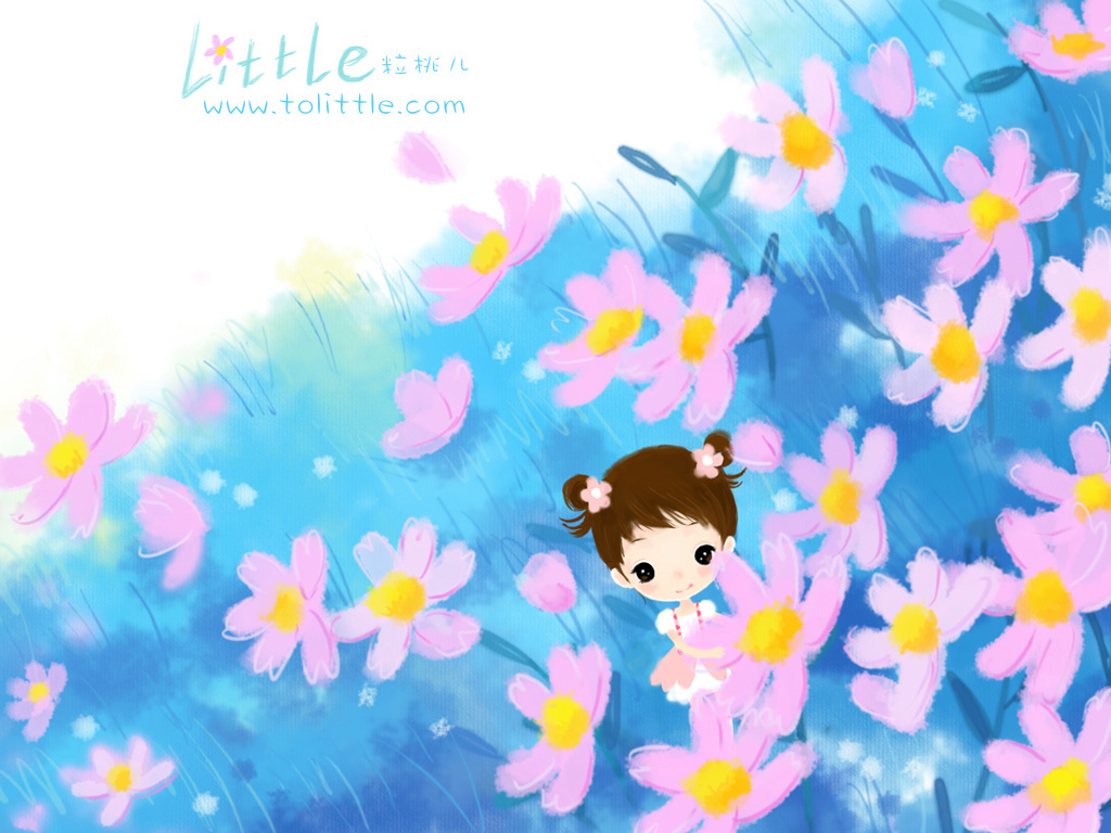 壁纸简介: 小粒桃儿在鲜花丛中,她是花儿的守护精灵~